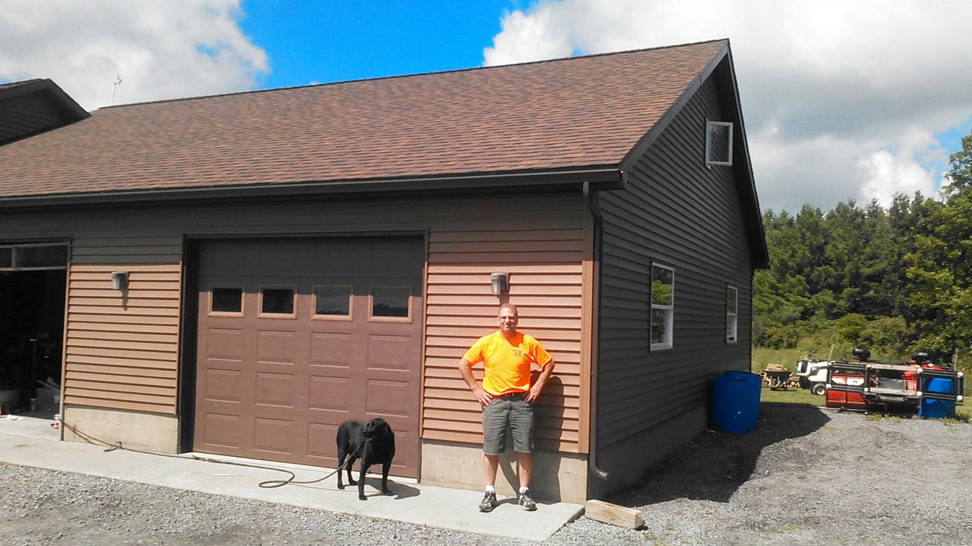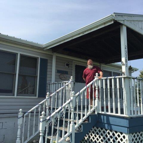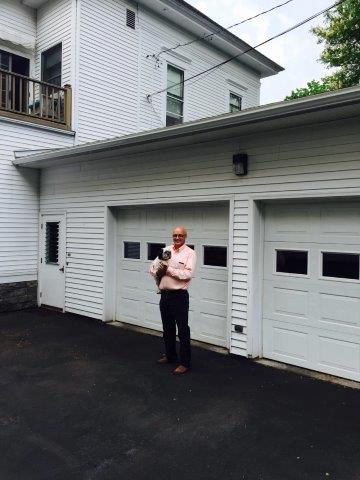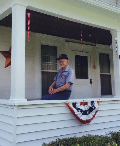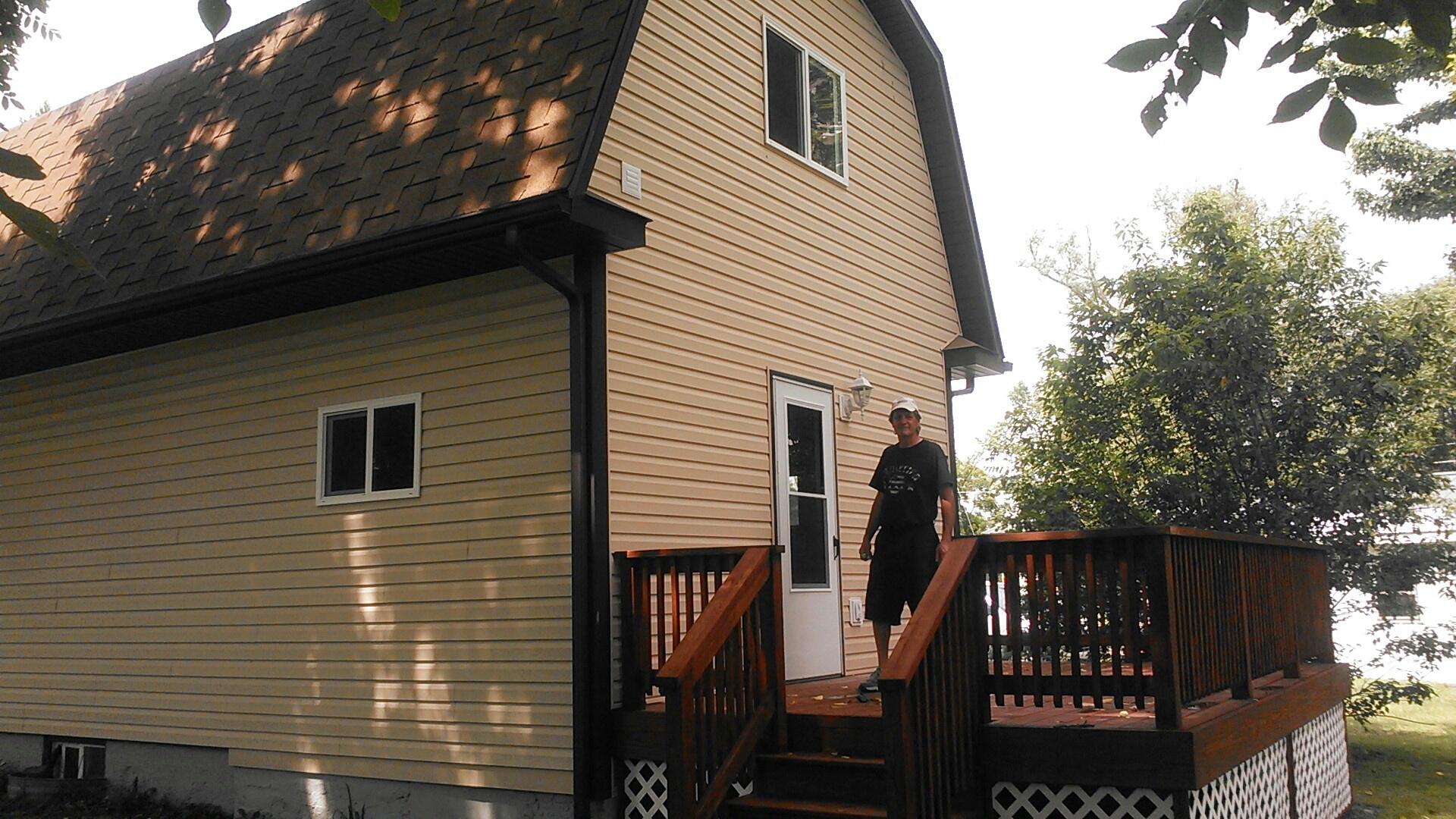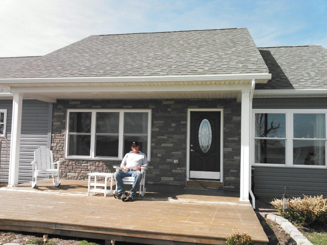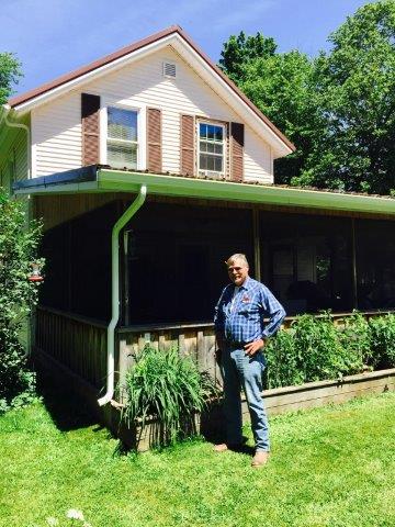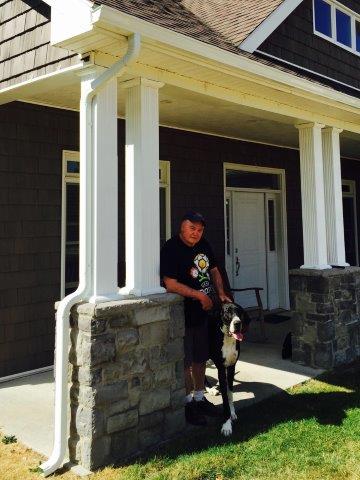 This satisfied customer never left his porch! He watched us make CUSTOM AMERICAN GUTTERS!